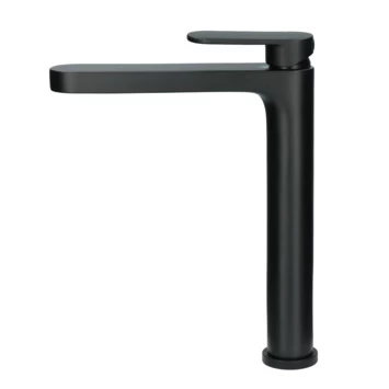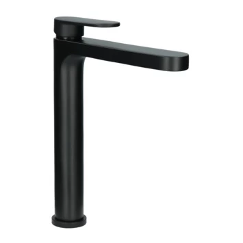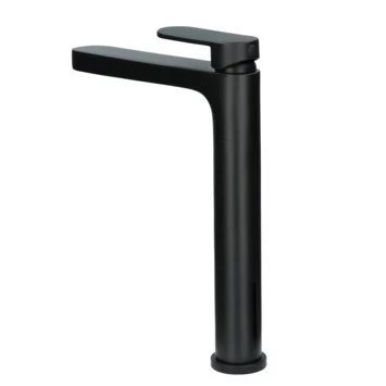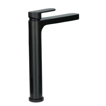 De Absolut wastafelkraan Iode hoge uitloop met hendel en waste Zwart is een elegante aanvulling in je keuken met de hoge L-vormige uitloop. De platte vorm en mat zwarte afwerking hebben een ingetogen uitstraling en passen altijd in jouw interieur, of die nu modern, landelijk of industrieel is. De wastafelkraan kun je ook in een medium model verkrijgen. De hoogte van maar liefst 32 cm zorgt ervoor dat je veel ruimte in je wastafel hebt. Handig als je je haar wil wassen! Met de eenhendelbediening meng je eenvoudig met 1 hand het water naar de gewenste temperatuur. De keramische schijven maken draaien soepel en nauwkeurig en vergen bovendien weinig onderhoud. Bij de kraanset krijg je ook een waste met afvoerplug; deze bedien je met een hendel aan de achterkant van de kraan. Zo hoef je nooit meer met je handen in te heet of vies water om de afvoer open te zetten. Met de meegeleverde flexibele aansluitslangen, bevestigingsmateriaal, waste met wasteinrichting, afvoerplug en montagehandleiding kun je de kraan heel eenvoudig zelf aansluiten. Op de kraan krijg je 5 jaar garantie.