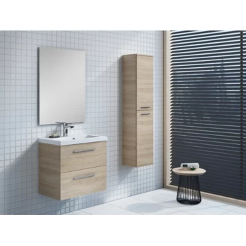 Het Atlantic badmeubel Alice past prima bij de andere badkamermeubelen van de collectie Alice of Clara. De hangende wastafel van 60 cm breed uit spaanplaat heeft 2 grote lades met softclose. Makkelijk te monteren en op te hangen. Combineer met een bijpassende kolomkast. Ook verkrijgbaar in het wit.