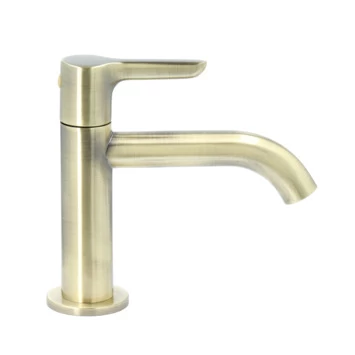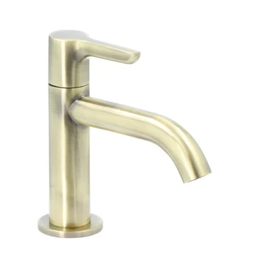 De Atlantic fonteinkraan Riley met hendel Messing bestaat uit een goudkleurige messing fonteinkraan van 12,2 cm hoog, bevestigingsmateriaal en montagehandleiding. De Riley fonteinkraan heeft een handige eenhendelbediening, waarmee je eenvoudig de kraan aan zet. De kraan heeft een diepte van slechts 10,2 cm en is daarmee uitermate geschikt voor gebruik in het toilet. De mat geborstelde afwerking geeft de tijdloos vormgegeven kraan een wat stoerdere uitstraling. Gebruik alleen water en een zachte doek om de kraan schoon te maken. Gebruik geen schurend, bijtend, azijnhoudend of agressief schoonmaakmiddel. Besluit je deze kraan te kopen? Dan heb je 5 jaar garantie.