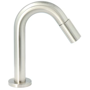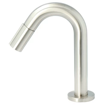 De Atlantic fonteinkraan Scott met draaiknop RVS bestaat uit een RVS fonteinkraan van 17,8 cm hoog, bevestigingsmateriaal en montagehandleiding. De kraan heeft een diepte van slechts 11,2 cm en is daarmee uitermate geschikt voor gebruik in het toilet. De Scott fonteinkraan zet je open met de draaiknop op het uiteinde van de kraanuitloop. Aan de anti-kalk perlator hecht kalk zich moeilijk vast en veeg je er gemakkelijk met de hand af. De ronde c-vormige kraan heeft een geborstelde RVS afwerking. Gebruik alleen water en een zachte doek om de kraan schoon te maken. Gebruik geen schurend, bijtend, azijnhoudend of agressief schoonmaakmiddel. Op de kraan heb je 5 jaar garantie.