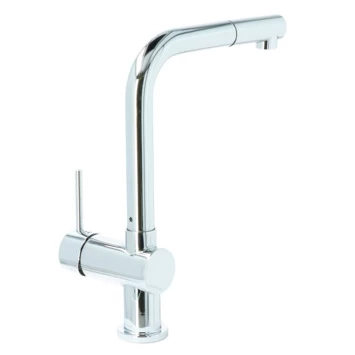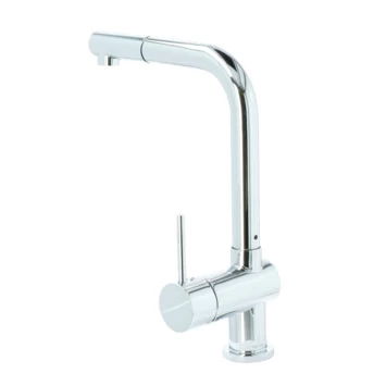 De Atlantic keukenkraan Stephen met hendel en uittrekbare sproeikop Chroom bestaat uit een chromen keukenkraan, 2 flexibele aansluitslangen, bevestigingsmateriaal, montage sleutel en montagehandleiding. De Stephen keukenkraan heeft een draaibare uitloop van 360° waarmee je eenvoudig plaats maakt bij je gootsteen. Ook de hoogte van maar liefst 31 cm geeft veel ruimte in de gootsteen. Handig als je bijvoorbeeld een grote pan of emmer wil vullen. En als je veel vaat hebt af te spoelen, trek je eenvoudig de sproeikop uit de kraan. Met de eenhendelbediening draai je met 1 hand de kraan naar de gewenste temperatuur. Draaien doe je soepel en nauwkeurig door de keramische schijven, die bovendien weinig onderhoud vergen. Je bespaart water door de ingebouwde eco-klik. De ingebouwde weerstand in de hendel zorgt ervoor dat je de kraan niet direct op de hoogste straalstand zet. Daarmee bespaar je dus op je waterverbruik. Goed voor het milieu en voor je portemonnee. Wens je toch een hardere straal, dan zet je de hendel wat verder open. Deze kraan heeft daarnaast ook nog ingebouwde keerkleppen die voorkomen dat vuil water terug de leiding instroomt. Aan de anti-kalk perlator hecht kalk zich moeilijk vast en veeg je er met de hand af. Deze rechte keukenkraan met hoge L-uitloop heeft een prachtig glanzende chromen afwerking en past met de strakke vormgeving in elk modern keukeninterieur. Gebruik alleen water en een zachte doek om de kraan schoon te maken. Gebruik geen schurend, bijtend, azijnhoudend of agressief schoonmaakmiddel. De kraan heeft het Belgaqua keurmerk en 5 jaar garantie.