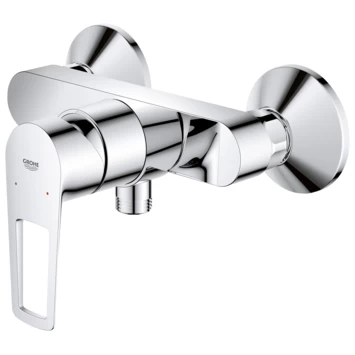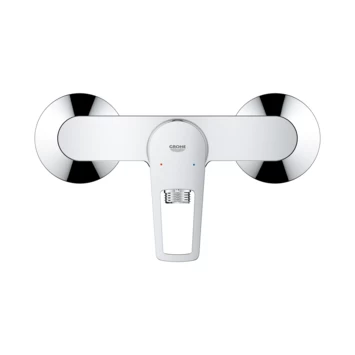 Wandmontage. Metalen greep. GROHE Longlife 35 mm kardoes met keramische schijven. Met geïntegreerde drukafhankelijke temperatuurbegrenzer. Variabel instelbare temperatuurbegrenzer. Douche-aansluiting onder 1/2″. Met geïntegreerde terugslagklep. Beveiligd tegen terugstroming. S-koppelingen inbegrepen. Metalen wandrozet inbegrepen