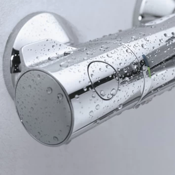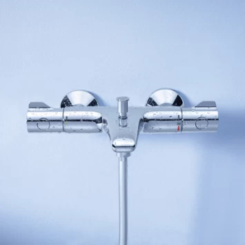 Met deze badkraan hoef je nooit meer elke keer de watertemperatuur te regelen. De GROHE TurboStat® technologie zorgt ervoor dat het water altijd op de door jou ingestelde temperatuur is. Die stel je overigens heel eenvoudig en precies in met behulp van de duidelijke aanduiding van GROHE EasyLogic. Zeep aan je handen? Dan nog is het regelen eenvoudig dankzij de vleugelvormige grepen. De kraan is ook voorzien van SafeStop, zodat het water nooit zomaar te heet kan worden. Daarmee is ook een kinderhuidje goed beschermd tegen te heet water. GROHE EcoJoy® is de waterbesparingsfunctie waarmee je tot wel 50% op je verbruik bespaart. De kraan is uitgevoerd met de glanzend chromen GROHE StarLight® beschermlaag die bovendien bijzonder onderhoudsvriendelijk is.