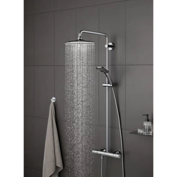 De Grohe Handdouche Vitalio Joy Ø11 cm 3 Standen Chroom in de kleur Grijs heeft een diameter van 110 mm en is voorzien van twee straalsoorten. Bij de GROHE Rain straal geven fijne regenstraaltjes het effect van een zomerse regenbui op je lichaam. Bij de GROHE Massage straal zorgen pulserende waterstoten voor een aangenaam tintelende ervaring. Met de SmartRain straal, die wordt geproduceerd door de SprayDimmer op de handdouche, kun je het waterverbruik met maximaal 40% verminderen. Tegelijk zorgt GROHE DreamSpray® technologie voor een perfecte verdeling van het water. Dankzij de universele bevestiging past de handdouche op alle standaard doucheslangen. De Vitalio handdouches Joy 2 SprayDimmer zijn verkrijgbaar in de kleuren Grijs, Rood, Blauw en Paars.