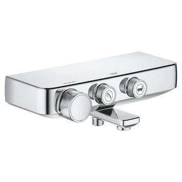 De naam GROHE thermostatische badkraan Grohtherm SmartControl Chroom zegt het al: een slimme badkraan die jou de precieze controle geeft voor een optimale comfortbeleving in je badkamer. Met de technologie GROHE SmartControl schakel je makkelijk tussen bad of handdouche met een druk op de knop. Het watervolume regel je eenvoudig door aan de knop te draaien. Je kiest hierbij voor een volle straal, of door de kraan wat minder ver open te zetten voor de EcoJoy, waarmee je water bespaart. De temperatuur stel je vooraf in, de GROHE TurboStat zorgt ervoor dat jouw water een constante temperatuur blijft houden tijdens het douchen, ondanks eventuele schommelingen in de waterdruk. Met de GROHE SafeStop op 38°C voorkom je dat je te heet doucht. Bovendien bespaar je zo eenvoudig op je energierekening. Desgewenst kun je ook de inbegrepen en makkelijk te installeren GROHE SafeStop Plus toevoegen, die je temperatuur begrenst bij 43°C. Wil je toch een hogere temperatuur? Dat kan met een druk op de knop. De CoolTouch technologie zorgt ervoor dat de buitenkant van de kraan nooit heter wordt dan de ingestelde temperatuur. Dat is wel zo veilig voor het hele gezin. De geïntegreerde keerkleppen voorkomen dat er vuil water terug de leiding instroomt. Extra gebruiksgemak heb je door de platte vormgeving van de thermostatische kraan: op de GROHE EasyReach douchetray heb je ruimte om je badartikelen neer te zetten. Zo heb je alles makkelijk bij de hand. De kraan is makkelijk zelf te installeren op elke universele waterleiding en ook de doucheuitloop heeft een universele maat van 1/2″. Je krijgt 5 jaar fabrieksgarantie. Kortom: De kraan met de strakke lijnen en de bestendige GROHE StarLight chromen afwerking biedt je niet alleen veel functionaliteit en besparing, maar blijft jarenlang een schitterende aanwinst in jouw badkamer. Van dit model is ook een douchekraan verkijgbaar.