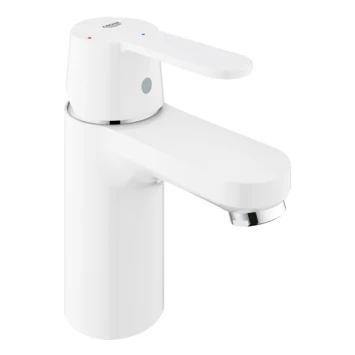 De GROHE wastafelkraan Get S-size met hendel en afvoerplug Wit is een kleine handige wastafelkraan die geleverd wordt met een afvoerplug met kliksysteem. Met de eenhendelbediening draai je eenvoudig met 1 hand de kraan naar de gewenste temperatuur en waterstraal. Het GROHE SilkMove ES (Energy Saving) binnenwerk met keramische schijven zorgt daarbij voor een soepele en nauwkeurige draaiing. En zijn bovendien ook nog energiebesparend doordat de kraan alleen koud water laat stromen in de middenstand van de hendel. Met de GROHE EcoJoy waterbesparende toepassing gebruik je maximaal 5,7 l/min. In combinatie met de instelbaarheid van de waterstroom is de minimale hoeveelheid water slechts 2,5 l/min! De meegeleverde afvoerplug zet je met een vingerdruk open of dicht. Het monteren van de kraan doe je extra snel en eenvoudig zelf met de QuickFix snelmontage. Met de meegeleverde flexibele aansluitslangen, afvoerplug, bevestigingsmateriaal en montagehandleiding kom je niets tekort. Deze wastafelkraan is met zijn rechte uitloop van 14 cm hoog een kleine, functionele en duurzame aanwinst in je badkamer. De rechte uitloop, strakke vormgeving en mat witte afwerking passen perfect in jouw moderne badkamerinterieur! De kraan is ook in een chromen uitvoering verkrijgbaar. Zo kies je altijd de juiste kleur bij jouw stijl. Kies je ervoor de kraan te kopen? Dan profiteer je van 5 jaar fabrieksgarantie.