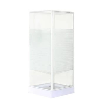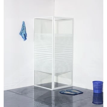 De OK douchecabine draaideur met zijwand, 90×90 cm voorzien van witte alumiminium profielen en 4 mm veiligheidsglas met een horitzontaal streepdecor. De draaideur scharniert aan de muur wat zorgt voor een ruime instap. De douchecabine is zowel links- als rechtsdraaiend te plaatsen op een douchebak of op de vloer. Dankzij de ruime afstelmogelijkheid van 87,5 tot 91 cm is de de cabine altijd waterpas te plaatsen. De deuren zullen hierdoor altijd netjes sluiten, zelfs wanneer de muren iets scheef zijn. Met de meegeleverde montage instructie & bevestigingsmaterialen kunt je de douchecabine zelf installeren.