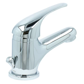 De OK kranen vormen ons basis assortiment. Alle kranen uit deze serie zijn chroom afgewerkt. Deze OK Wastafelkraan met Hendel en Waste Chroom is voorzien van keramische schijven en een waste. Met deze voorziening kun je, d.m.v. een hendeltje aan de achterzijde van de kraan, gemakkelijk je afvoerplug openen en sluiten. Deze bijbehorende afvoerplug wordt meegeleverd. De kraan wordt geleverd met bijbehorend aansluitmateriaal en 2 jaar garantie.