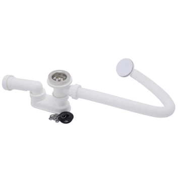 De Sanivesk badafvoercombinatie is geschikt voor standaard en grote plaatstalen en kunststof baden met een afvoer van 40 mm. De badafvoer heeft een 6/4″ plug en kan worden aangesloten op een 40 mm afvoerbuis.