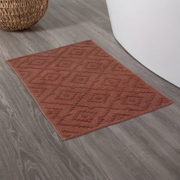 Een badkamer met wereldse invloeden? Check! De badmat van Sealskin Aztec zorgt voor kleurrijke vibes in je casa. De donkerroze kleur met grafische patronen mixen hier goed met elkaar.