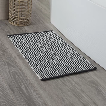 Sealskin Bandra badmat zwart 60×90 cm van het kwaliteitsmerk Sealskin is gemaakt van 100% gerecyclede katoen vezels. Buiten het feit dat het een “groene” badmat is en dus een bewuste keuze, geeft de Bandra badmat ook een prettig gevoel aan de voeten. De Bandra badmat in de kleur zwart-wit geeft de badkamer een trendy uitstraling en past in iedere gangbare badkamer. De Bandra badmat is 60 bij 90 centimeter en is zwart met wit geblokt, dit geeft een uniek en hip effect. Deze badmat is goed wasbaar op 30 graden.