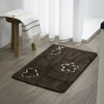 Vrolijke serie badmatten en toiletmatten van Sealskin. Doet je in gedachten weer even terugdenken aan het spel, boter kaas en eieren. Een vis, een hartje en een sterretje geven het gevoel van het buitenleven aan je badkamer met de Sealskin Badmat Tack Bruin 90×60 cm. De badmat is gemaakt van acryl dat de warmte goed vasthoudt. Lekker zacht aan je voeten en toch geen kriebels. Dat is één van de voordelen van acryl.