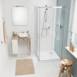 De Sealskin Douchecabine met Schuifdeur Compact Hoekinstap 90×195 cm Chroom is een solide douchecabine met een moderne uitstraling. Er is veel aandacht geschonken aan de details; zo zijn schroeven waar mogelijk onzichtbaar weggewerkt. Dat is mooi én makkelijk in het onderhoud. De strakke vormgeving zonder onnodige randjes maken dit een minimalistische en tegelijkertijd duurzame douchecabine. De deuren schuiven open en dat maakt een ruime douchecabine ook in de kleinere badkamer mogelijk. Je hebt immers geen uitzwaai van deuren waarmee je met je inrichting rekening moet houden!