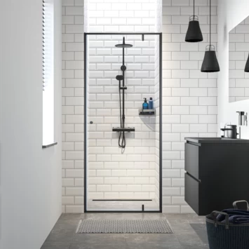 De Draaideur voor nis Contour Zwart 90x200cm is een 2-delige draaideur die in een nis geplaatst kan worden. De draaideur heeft een minimalistisch kader met een matzwarte afwerking. De deur zelf is gemaakt van 6mm dik veiligheidsglas en is voorzien van een antikalklaag. Dankzij deze laag blijft het glas langer mooi helder. De Draaideur voor nis Contour Zwart 90x200cm is deel van de Contour serie. Liever een schuifdeur of een inloopdouche? Ook deze kun je vinden op onze website.