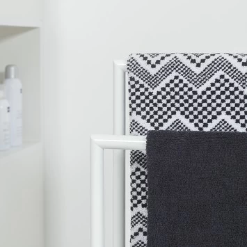 Het Sealskin Handdoekrek Tube Metaal Wit is een handig dubbel handdoekrek voor in je badkamer. Aan de 2 standaarden hang je gemakkelijk 2 handdoeken op. Met de afmeting van 81 cm hoog, 45,5 cm breed en 19,7 cm diep past dit vrijstaande handdoekrek in vrijwel iedere badkamer en je hebt geen boorgaten nodig om het te installeren. Bovendien kun je het altijd neerzetten waar jij het wil. Dat biedt je een hoop flexibiliteit. Je zet het rek eenvoudig zelf in elkaar met de meegeleverde montagehandleiding. De tijdloze wit metalen afwerking van de handdoekhouder past in ieder interieur. Wens je toch een andere kleur? De houder kun je ook in chroom kopen bij Gamma. Op het rek krijg je 1 jaar garantie. Het is wel belangrijk dat je de set regelmatig schoonmaakt met een vochtige doek, zo heb je lang plezier van jouw handdoekhouder.