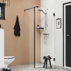 De volledig profielloze serie ‘I AM’ is met recht een transparante alleskunner. Naast diverse standaard maatvoeringen zijn talloze maatwerkoplossingen mogelijk. Zo kunnen we de breedte en hoogte aanpassen, maar bijvoorbeeld ook eventuele schuintes in de muren of het plafond opvangen. Deze Sealskin Inloopdouche I AM A1 88x30x200 cm Zwart bestaat uit een wand met een vast deel op 90 graden. Het is een bijzonder transparante inloopdouche die nét even wat meer water in de doucheruimte houdt. Wat deze douche écht bijzonder maakt, is de unieke matzwarte afwerking. Zo breng je een unieke sfeer in je badkamer. Het veiligheidsglas van maar liefst 8mm is altijd voorzien van een antikalk laag waardoor kalk en viezigheid zich minder snel hecht. I AM Inloopdouches van het type A1 zijn beschikbaar in 980, 1180 en 1380mm. Deze inloopdouche is tevens beschikbaar in een luxueuze zilver hoogglans afwerking en in een stoere RVS uitstraling.