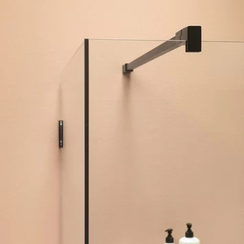 De volledig profielloze serie ‘I AM’ is met recht een transparante alleskunner. Naast diverse standaard maatvoeringen zijn talloze maatwerkoplossingen mogelijk. Zo kunnen we de breedte en hoogte aanpassen, maar bijvoorbeeld ook eventuele schuintes in de muren of het plafond opvangen. Deze A1 inloopdouche bestaat uit een wand met een vast deel op 90 graden. Het is een bijzonder transparante inloopdouche die nét even wat meer water in de doucheruimte houdt. Wat deze douche écht bijzonder maakt, is de unieke matzwarte afwerking. Zo breng je een unieke sfeer in je badkamer. Het veiligheidsglas van maar liefst 8mm is altijd voorzien van een antikalk laag waardoor kalk en viezigheid zich minder snel zal hechten. I AM Inloopdouches van het type A1 zijn als beschikbaar in 900, 1000 en 1200mm. Het vaste deel is 300mm. Deze inloopdouche is tevens beschikbaar in een luxueuze zilver hoogglans afwerking en in een stoere RVS uitstraling.