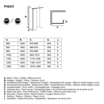 De Sealskin Inloopdouche Impact A1 88x30x195 cm Chroom heeft 8mm dik veiligheidsglas en oogt stijlvol. De ruimtelijke opzet wordt versterkt door de inkortbare steun die op 90 graden geplaatst wordt voor maximale stabiliteit. De douchewand is in een douchebak te plaatsen, maar kan ook direct op de vloer gemonteerd worden. Het veiligheidsglas zorgt voor een stevige wand en dankzij de antikalk laag is de douchewand eenvoudig schoon te maken. Deze inloopdouche kun je ook in de breedtematen 98, 118 en 138 cm in de GAMMA webshop kopen.