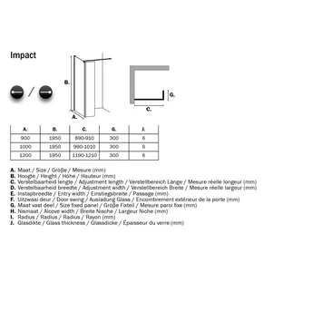 De Sealskin Inloopdouche Impact A1 90x195x30 cm Chroom heeft 8mm dik veiligheidsglas en oogt stijlvol. De ruimtelijke opzet wordt versterkt door de inkortbare steun die op 90 graden geplaatst wordt voor maximale stabiliteit.
