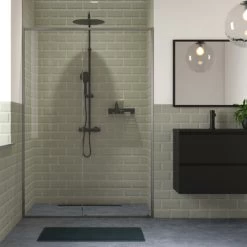 Creëer een rustige basis met deze schuifdeur voor plaatsing in een nis uit de Contour-serie. Hij is stijlvol door zijn solide bouw en matgrijze kleurafwerking. De kleur mat grijs is allesbehalve saai en kan goed gecombineerd worden met verschillende badkamerstijlen. Dankzij het minimalistische kader oogt jouw badkamer direct ruimtelijk. Het 6 mm dikke veiligheidsglas is voorzien van een antikalklaag, waardoor je douche langer helder blijft. Deze doucheoplossing is de definitie van stijl en comfort.