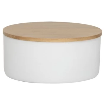 Het Sealskin Spiegeldoosje Grace Wit is gemaakt uit steen. Het doosje zelf is vervaardigd uit wit steen en het deksel heeft een bamboe accent. Het doosje is een sierraad voor je badkamer of make-up tafel. In het doosje kan je sierraden opbergen en in het houten deksel is een spiegeltje verborgen. Door het spiegeltje in de speciale inkepingen te plaatsen, kan het doosje ook gebruikt worden als make-up spiegel. Vervolledig deze Grace serie van Sealskin met de bijhorende zeepdispenser, toiletborstel met houder, beker en tandenborstelhouder.