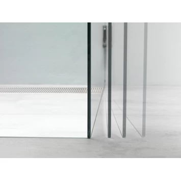 Sealskin Swingdeur voor Douchewand I AM 200×90 cm RVS, 8mm helder veiligheidsglas + antikalk. De volledig profielloze serie ‘I AM’ is met recht een transparante alleskunner. Naast diverse standaard maatvoeringen zijn talloze maatwerkoplossingen mogelijk. Zo kunnen we de breedte en hoogte aanpassen, maar bijvoorbeeld ook eventuele schuintes in de muren of het plafond opvangen. Deze draaideur, gecombineerd met een vaste zijwand, maken een moderne, transparante douche. Het veiligheidsglas van maar liefst 8mm is altijd voorzien van een antikalk laag waardoor kalk en viezigheid zich minder snel zal hechten. De scharnieren van I AM zijn zelfsluitend. Dat zorgt ervoor dat de deur automatisch naar zijn nulpunt gaat; hij gaat dus vanzelf dicht! Bovendien is dat nulpunt in te stellen. Je kunt je deur dus onder een hoek plaatsen en zo een unieke oplossing maken.I AM draaideuren voor combinatie met zijwand zijn ook beschikbaar in de standaardmaat 1000mm en natuurlijk als maatwerk oplossing. De scharnieren en grepen zijn tevens beschikbaar in luxueus chroom en in een unieke matzwarte afwerking.