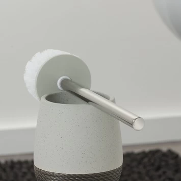 De Sealskin Toiletborstel met houder Braid Lichtgrijs is gemaakt uit keramiek. De twee grijstinten en de vormgeving zorgen ervoor dat deze wc-borstelhouder perfect past in een landelijke badkamer of toilet. Het onderste gedeelte van de toiletborstelgarnituur heeft een voelbare touwstructuur. De wc-borstelhouder plaats je op de grond en heeft ruimte voor 1 wc-borstel. De Sealkin serie Braid bestaat ook nog uit een beker en zeepdispenser. De Braid reeks is ook verkrijgbaar in wit met zandtinten.