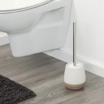 De Sealskin Toiletborstel met houder Braid Wit is gemaakt uit keramiek. De zandtinten en de vormgeving zorgen ervoor dat deze wc-borstelhouder perfect past in een landelijke badkamer of toilet. Het onderste gedeelte van de toiletborstelgarnituur heeft een voelbare touwstructuur. De wc-borstelhouder plaats je op de grond en heeft ruimte voor 1 wc-borstel. De Sealkin serie Braid bestaat ook nog uit een beker en zeepdispenser. De Braid reeks is ook verkrijgbaar in grijstinten.