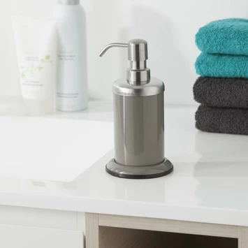 De Sealskin Zeepdispenser Acero Taupe is gemaakt van roestvrijstaal wat een hoogwaardige kwaliteit is en de pomp kun je daardoor prima gebruiken in vochtige ruimtes. De vrijstaande zeepdispenser van 17,8 cm hoog heeft een rubberen onderrand die ervoor zorgt dat het zeeppompje stabiel op zijn plek blijft staan. De zeepdispenser kun je gemakkelijk navullen en overal plaatsen waar je wil. Met de elegante en tijdloze vormgeving in de kleur taupe past de dispenser in ieder interieur.