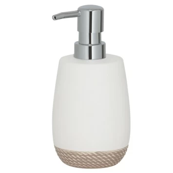 De Sealskin Zeepdispenser Braid Wit is gemaakt uit keramiek. De zandtinten en de vormgeving zorgen ervoor dat dit zeeppompje perfect past in een landelijke badkamer of toilet. Het onderste gedeelte van de zeepdispenser heeft een voelbare touwstructuur. Het pompje is handmatig te bedienen en de dispenser is navulbaar. De Sealkin serie Braid bestaat ook nog uit een toiletborstel met houder en beker. De Braid reeks is ook verkrijgbaar in lichtgrijs.