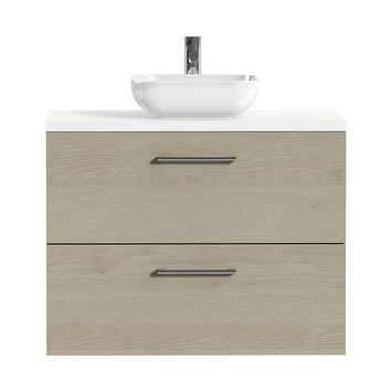 Tiger Badkamermeubel Studio 80 Cm Naturel Eik Met Keramische Waskom Hoogglans Wit En Ronde Grepen