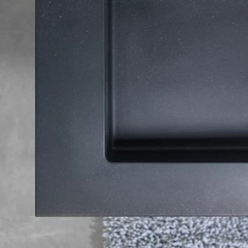 Daarnaast bestaat deze set uit een matzwarte polybeton wastafel met natuursteen look. Tijdens het ontwerpproces van de waskom is goed nagedacht over een juiste balans tussen design en functionaliteit. Polybeton wastafels zijn hygiënisch en gemakkelijk in onderhoud. De wastafel heeft een externe overloop en 1 kraangat. Voor het overloopgat wordt een sierring in zowel chroom als zwart meegeleverd waardoor deze altijd mooi aansluit bij je badkameraccessoires.