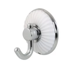 “De grote haak uit de Ivy serie van Tiger is uitgevoerd in de kleur chroom. De haak is belastbaar tot 3 kg en eenvoudig te bevestigen aan de wand met de bijgeleverde bevestigingsmaterialen. De Ivy serie bevat tevens een groot aantal aanvullende accessoires voor de badkamer en het toilet in dezelfde stijl. De haak is tevens geschikt voor montage met TigerFix type 1, waarmee accessoires snel en eenvoudig op een gladde, harde ondergrond te bevestigen zijn door middel van een gepatenteerd lijmsysteem. Boren is niet noodzakelijk en de accessoires zijn eenvoudig te verwijderen zonder dat er resten op de ondergrond achterblijven. TigerFix is apart verkrijgbaar. Heerlijk wegdromen in de badkamer in een landelijk klassieke sfeer doe je met de accessoires uit de Ivy serie. Vormgegeven in de kleur chroom met accenten in keramiek versterken de artikelen uit deze serie de elegante, romantische stijl van je badkamer.”