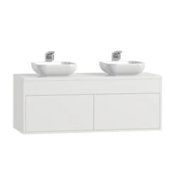Het Tiger Helsinki badkamermeubel is een simplistisch, modern en greeploos meubel in Scandinavisch design. De wastafelonderkast is voorzien ruime lades waarin alle badkamerspullen overzichtelijk opgeborgen kunnen worden. Voor extra comfort is deze onderkast voorzien van handige ‘push to open’ lades waardoor ze al middels één simpele aanraking openen. Door de mooie heldere witte kleur krijgt het meubel een tijdloze uitstraling. Het houten wasblad is reeds voorzien van een uitsparing voor kraan en waskom. De elegante, onderhoudsarme keramische waskom maakt de set compleet.