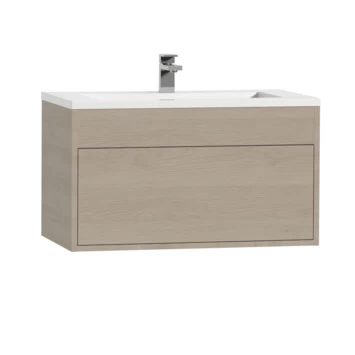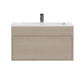 Het Tiger Helsinki badkamermeubel is een simplistisch, modern en greeploos meubel in Scandinavisch design. De wastafelonderkast is voorzien ruime lades waarin alle badkamerspullen overzichtelijk opgeborgen kunnen worden. Voor extra comfort is deze onderkast voorzien van handige ‘push to open’ lades waardoor ze al middels één simpele aanraking openen. De warme houttint geeft een sfeervol karakter aan het meubel. Daarnaast krijgt het meubel, door de voelbare houtnerf, een mooie natuurlijke uitstraling .De strak vomgegeven polybeton wastafel maakt deze set compleet.