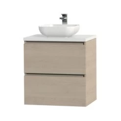 Tiger Karlo Badkamermeubelset 60 Cm Naturel Eik Met Wit Houten Wasblad En Glanzend Witte Keramische Waskom