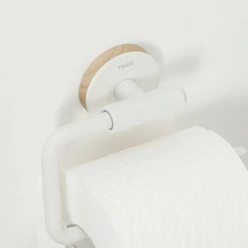De Tiger Toiletrolhouder Urban Wit is uitgevoerd in de kleur mat wit en wordt geleverd met twee decorringen. De decorringen, in de kleur licht eiken en grijs, maken het mogelijk een subtiel kleuraccent toe te voegen. Het is ook mogelijk de toiletrolhouder zonder de decorring te monteren waardoor het zeer eenvoudig is om het product aan de gewenste stijl aan te passen. Bij de montage van het artikel wordt gebruik gemaakt van een muurplaatje waardoor de bijgeleverde bevestigingsmaterialen uit het zicht verdwijnen. De Urban serie bevat tevens een toiletrolhouder met klep, maar ook een groot aantal aanvullende accessoires voor de badkamer en toiletruimte. Alle in dezelfde stijl. De artikelen uit de serie zijn ook in de kleur mat zwart verkrijgbaar, waarbij natuurlijk ook weer diverse decorringen worden meegeleverd. De toiletrolhouder is tevens geschikt voor montage met TigerFix type 1, waarmee accessoires snel en eenvoudig op een gladde, harde ondergrond te bevestigen zijn door middel van een gepatenteerd lijmsysteem. Boren is niet noodzakelijk en de accessoires zijn eenvoudig te verwijderen zonder dat er resten op de ondergrond achterblijven. TigerFix is los verkrijgbaar.