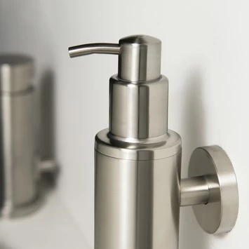 De Tiger Zeepdispenser Boston Hangend RVS van de accessoire serie Boston is uitgevoerd in geborsteld RVS, en is ook verkrijgbaar in glanzend RVS. De zeepdispenser bevat een uitneembare kunststof binnenfles, dit vereenvoudigt het vullen en het schoonmaken. Dit product kan aan de wand worden geschroefd, maar kan ook met behulp van Tigerfix 1 op een gladde en harde ondergrond geplakt worden. Je hoeft dus niet te boren. (Tigerfix is los verkrijgbaar). Er zijn van deze serie diverse sanitair accessoires verkrijgbaar, waaronder verschillende maten Boston zeepdispensers, inclusief de kleinere versie voor het toilet. Dit product maakt deel uit van het Boston totaalconcept, dat verder bestaat uit kranen, badmeubelen, douche accessoires en douchecabines, alles in de Boston stijl.