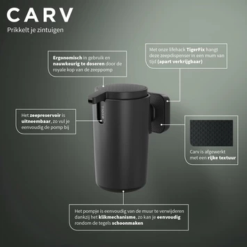 Carv is eenvoudig te bevestigen met TigerFix, onze lifehack voor iedereen die niet wil boren.
