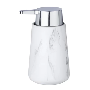 De zeepdispenser Adrada geeft je badkamer, toilet of keuken een unieke uitstraling door het bijzondere marmerdesign. De zeepdispenser kan gevuld worden met maximaal 330 ml vloeibare zeep of waslotion. De zeepdispenser kan ook gebruikt worden als hygiëne– en desinfectiemiddeldispenser. De zeepdispenser Adrada is gemaakt van hoogwaardig keramiek en zal hierdoor dan ook een lange tijd meegaan. Je kan de Badi badkamerserie stijlvol uitbreiden met de bijbehorende tandenborstelhouder.